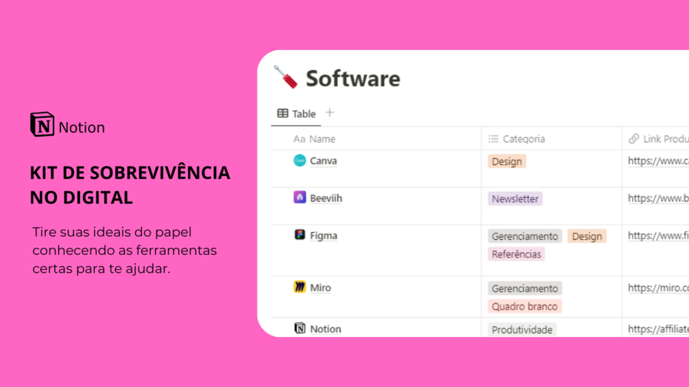 Nessa jornada, descobri muitas ferramentas para ajudar a melhorar a minha forma de trabalhar. Fiz uma curadoria das minhas descobertas e disponibilizei para você usar.